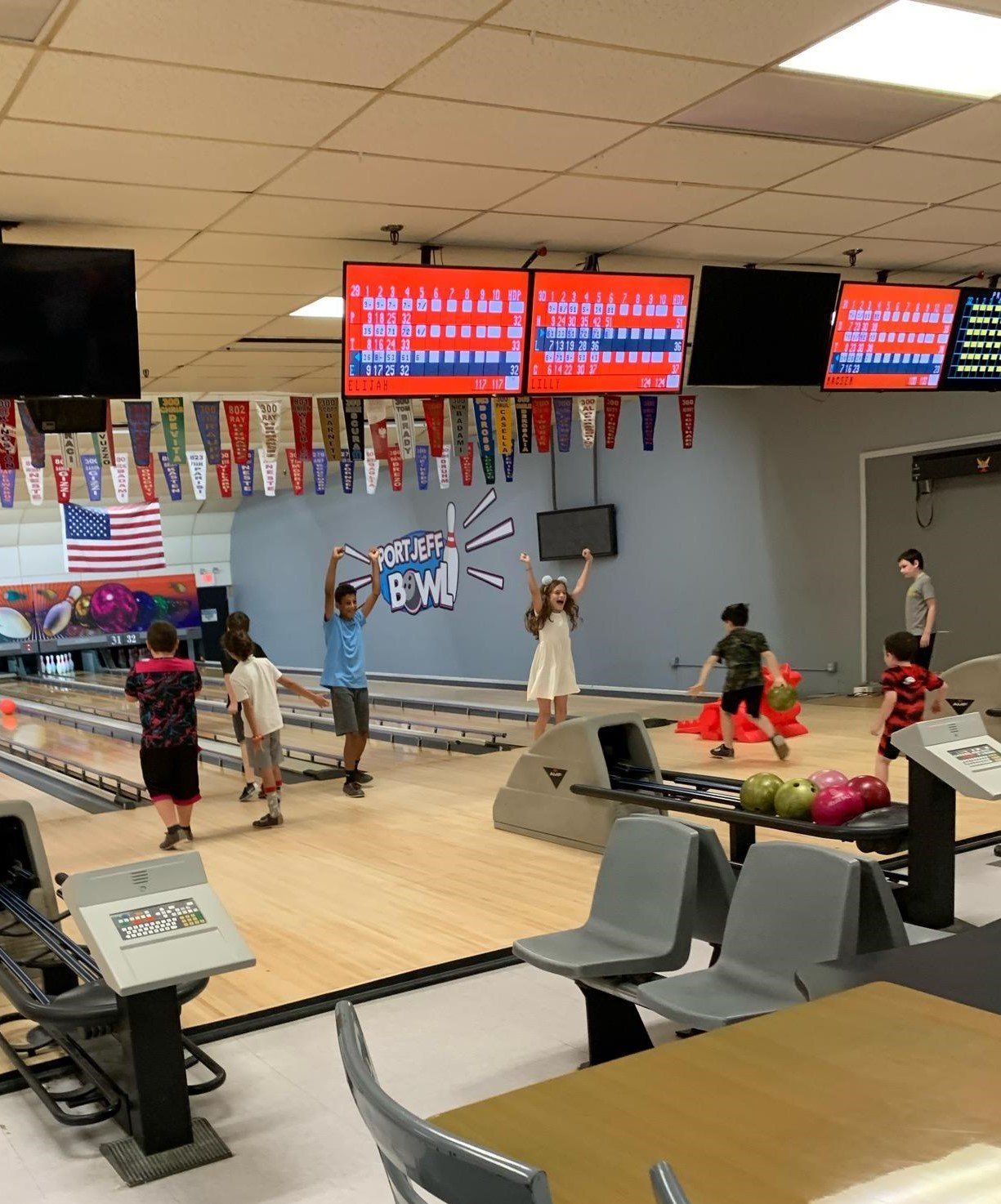 Port Jeff Bow is located on Chereb Lane in Port Jefferson Station, a convenient destination for those on Long Island. We are a family-friendly center for all ages! We have 32 bowling lanes, a community room that’s available for rental that can hold up to 100 people for your party. Lucky Strike Bar & Lounge offers 3 large screen televisions great sports viewing, easy access to our food court, and events year-round.